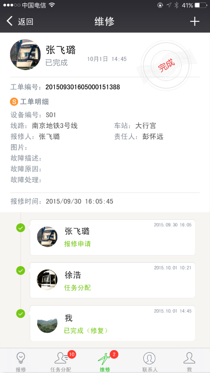 主要功能包括:维修工单化、自修、签到、对接企业微信实现地铁全员报修和跟踪、知识库、溯源查询、二维码快速报修,等等